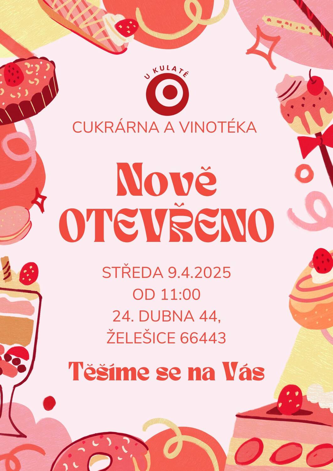Cukrárna a vinotéka U Kulaté se na Vás těší v nově předělaných prostorech od 9. dubna. Více informací v plakátu.