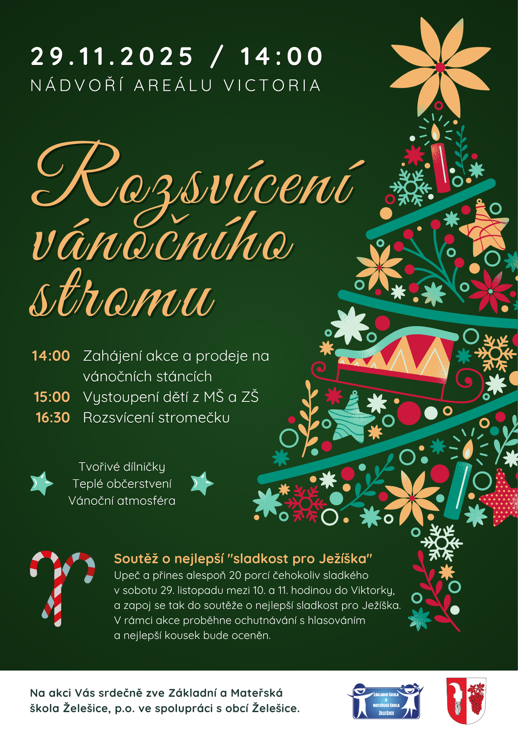 V sobotu 29. listopadu od 14:00 hodin proběhne na nádvoří areálu tradiční akce Rozsvícení vánočního stromu. Na programu bude vystoupení dětí z MŠ a ZŠ, prodej na vánočních stáncích a další! Více informací v plakátu.